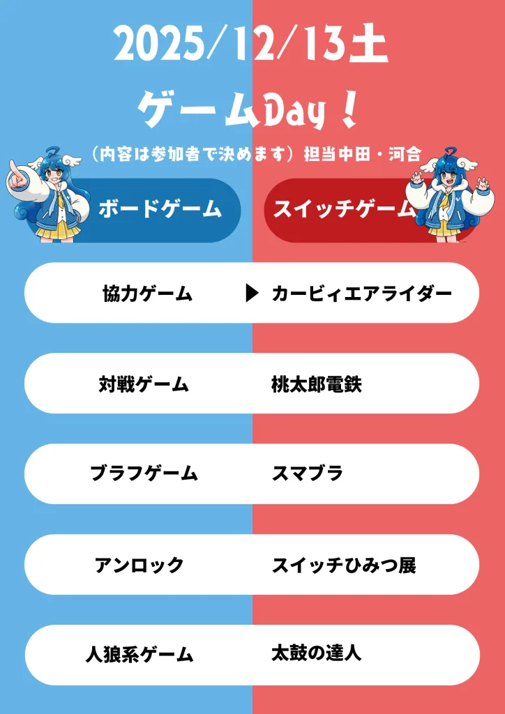 この日は「スイッチ2」が登場し、桃太郎電鉄やカービィのエアライダーで大盛り上がり!チームでワイワイ楽しんだり、一人でじっくりプレイする方もいて、ゲームの中でもしっかり「自分のペース」を守れている姿が印象的でした。