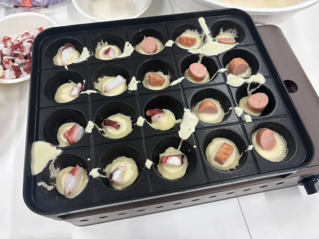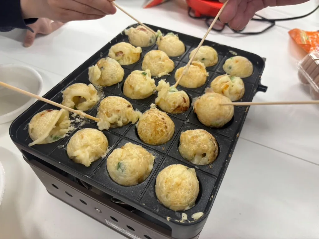 朝からホットプレートを囲みながら、たこ焼きをくるくる…。あちこちで「うまく丸くできた!」「アツい!笑」と声が飛び交い、食べて笑っての幸せな時間になりました。