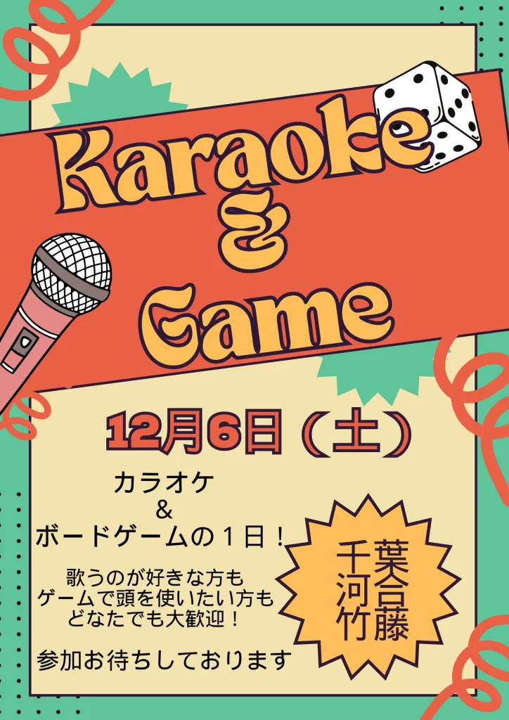 カラオケをしつつ、合間にはボードゲームも。カラオケに夢中になる人もいれば、カードゲームでじっくりと戦略を立てる人もいて…それぞれが自分らしいスタイルで楽しんでいました😊
