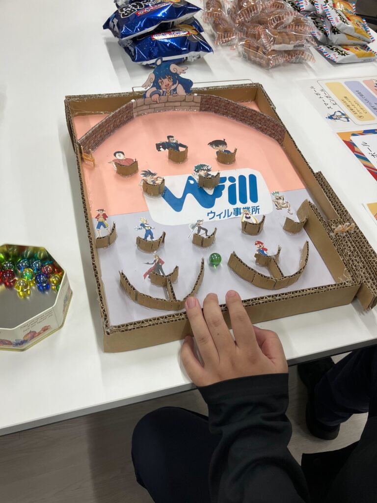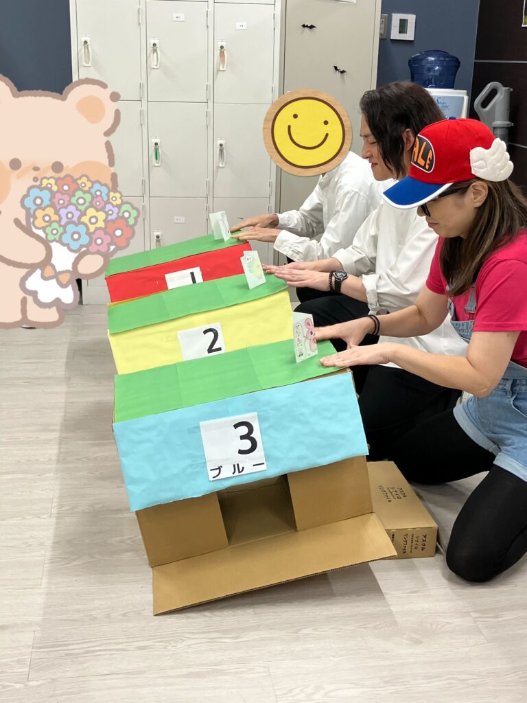 これは、紙でできた“お馬さん”にお菓子をBETして、どの馬が勝つかを予想するゲーム。